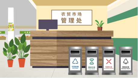 農貿市場因為批量銷售果蔬,產生的廚余垃圾和其他垃圾數量較大,因此農貿市場指引里標注,可分段、分樓層設置廚余垃圾、其他垃圾收集容器,設置數量根據市場實際情況決定。指引中還特別強調包裝用的繩子、塑料袋等要投入其他垃圾收集容器,不得與廚余垃圾混投。