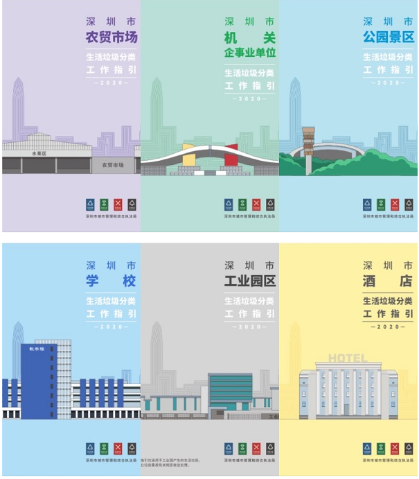 為指導生活垃圾分類投放與收集設施設置,推動構建科學合理、簡便易行的分類投放體系,深圳市城市管理和綜合執(zhí)法局組織編制了學校、工業(yè)園、酒店、農貿市場、機關事業(yè)單位、公園景區(qū)、醫(yī)院、餐飲場所、城中村、住宅區(qū)、商務寫字樓、大型商超12 類場所的生活垃圾分類投放工作指引。