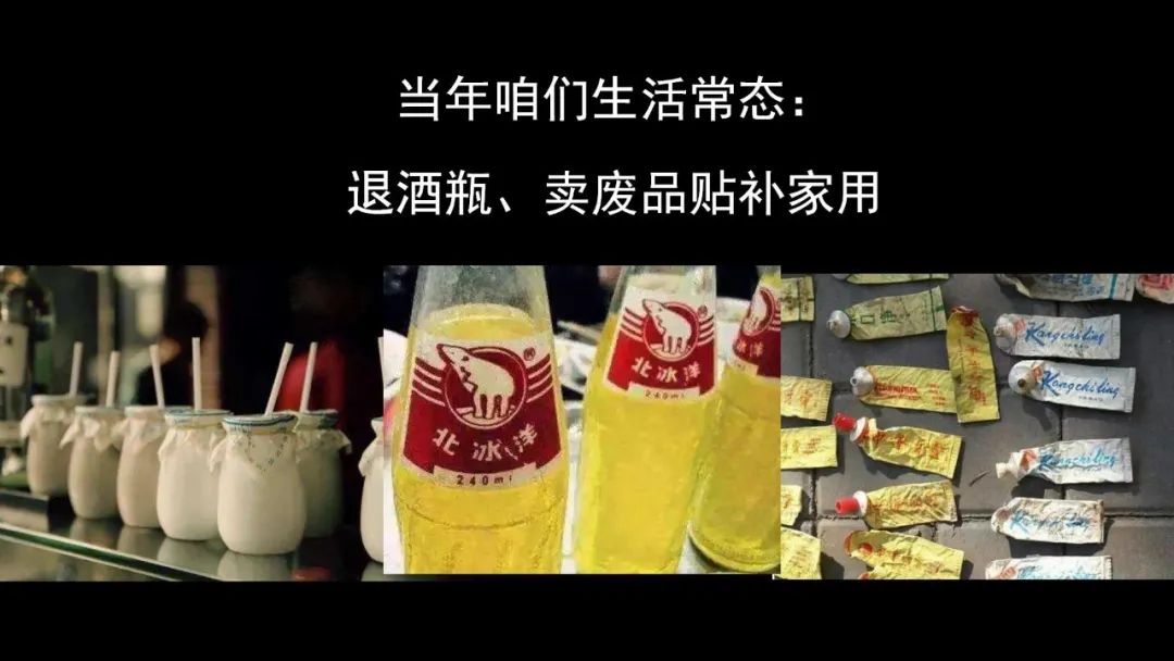 像我們六十年代出生的人,小的時(shí)候,牙膏皮可以換錢;我們浙江人家里宰了雞,雞毛可以去換糖;我剛開始到北京讀書的時(shí)候,喝酸奶,酸奶瓶有押金,還回去,把錢還給你。