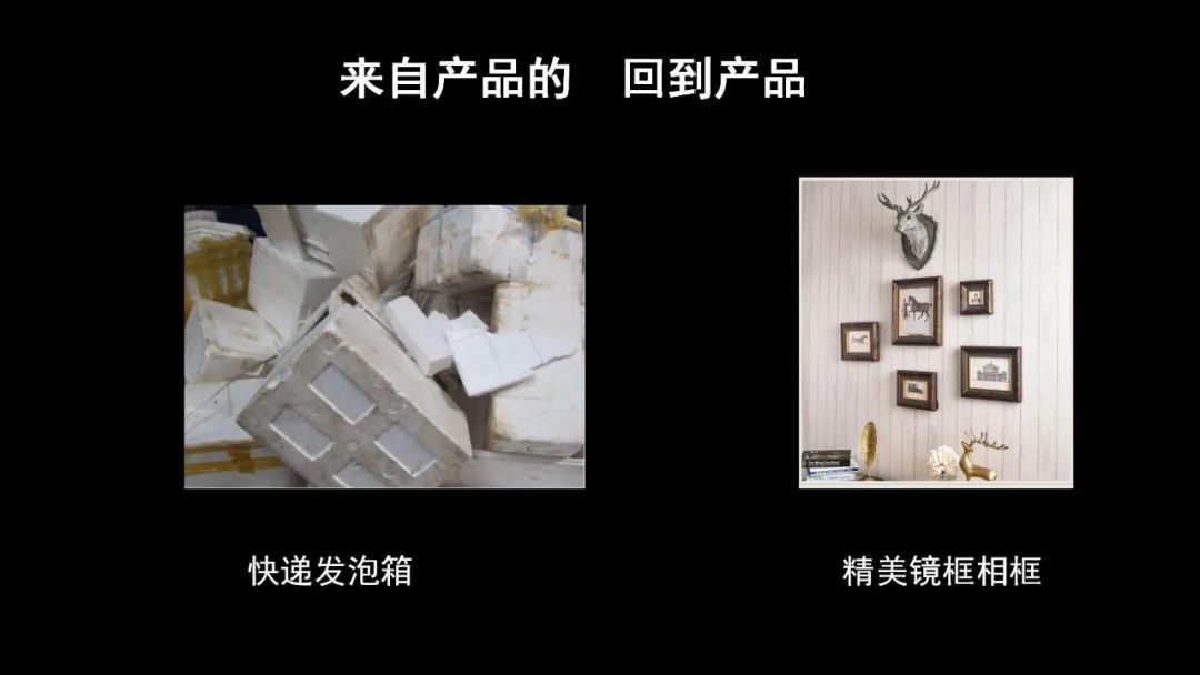 第二句話叫做:來(lái)自產(chǎn)品,要回到產(chǎn)品。你看我們從石油做成石油聚合物,做成發(fā)泡箱,我們把發(fā)泡箱按照物質(zhì)不滅定律,把它做成漂亮的鏡框、相框,繼續(xù)為大家服務(wù)。