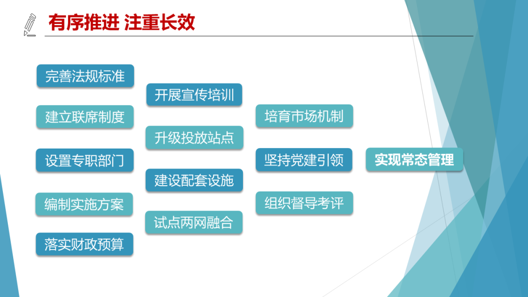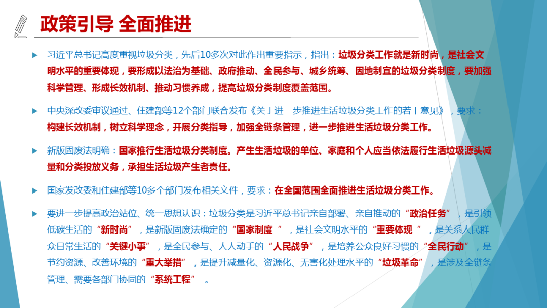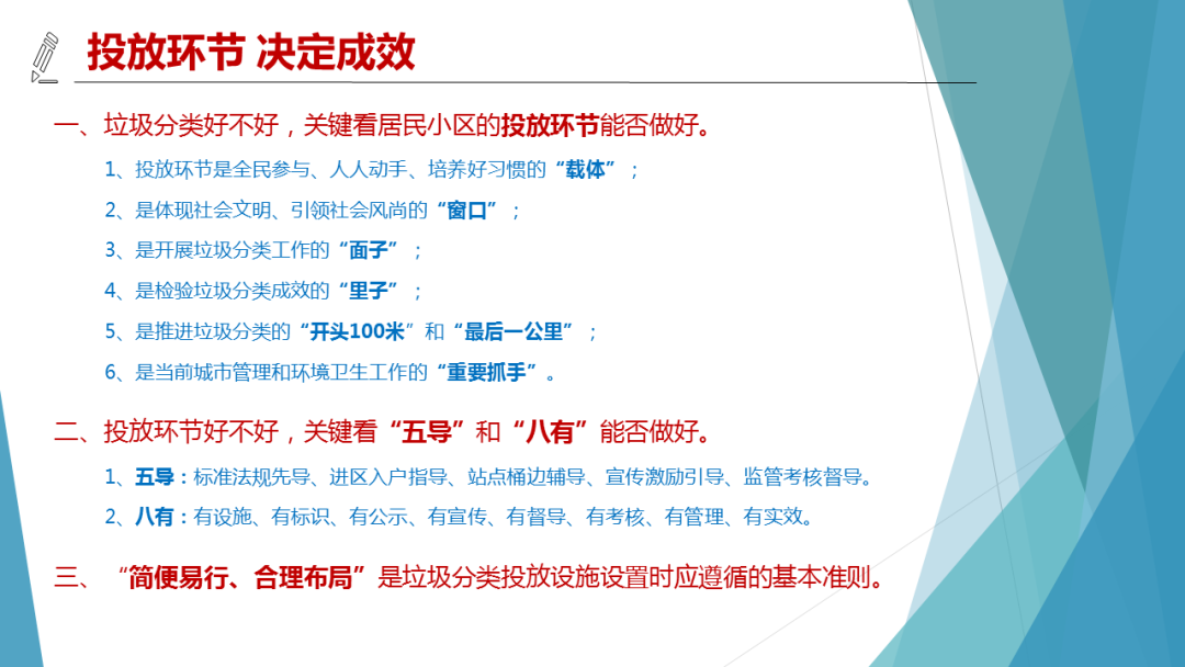 自習(xí)近平總書記2016年11月21日提出要建立生活垃圾分類制度以來,46個重點城市的垃圾分類工作取得了初步成效,其他城市的垃圾分類工作也在逐步推進(jìn),但由于受新冠疫情等影響,總體進(jìn)展情況低于預(yù)期。垃圾分類是一項涉及面很廣的系統(tǒng)工程,其中小區(qū)投放環(huán)節(jié)是決定成敗的核心環(huán)節(jié),而“簡便易行、合理布局”是投放設(shè)施設(shè)置的基本準(zhǔn)則。如何按照這個準(zhǔn)則來規(guī)范管理人職責(zé)和行為、優(yōu)化投放點設(shè)置和形式、實施居民區(qū)宣傳和督導(dǎo)?本期固廢觀察將與你一一分享。