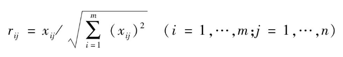 TOPSIS是在歸一化后的原始數(shù)據(jù)矩陣中,找出方案中最優(yōu)方案和最劣方案,然后計算各評價對象與各方案距離,獲得評價對象與最優(yōu)方案的相對接近程度,其步驟如下: