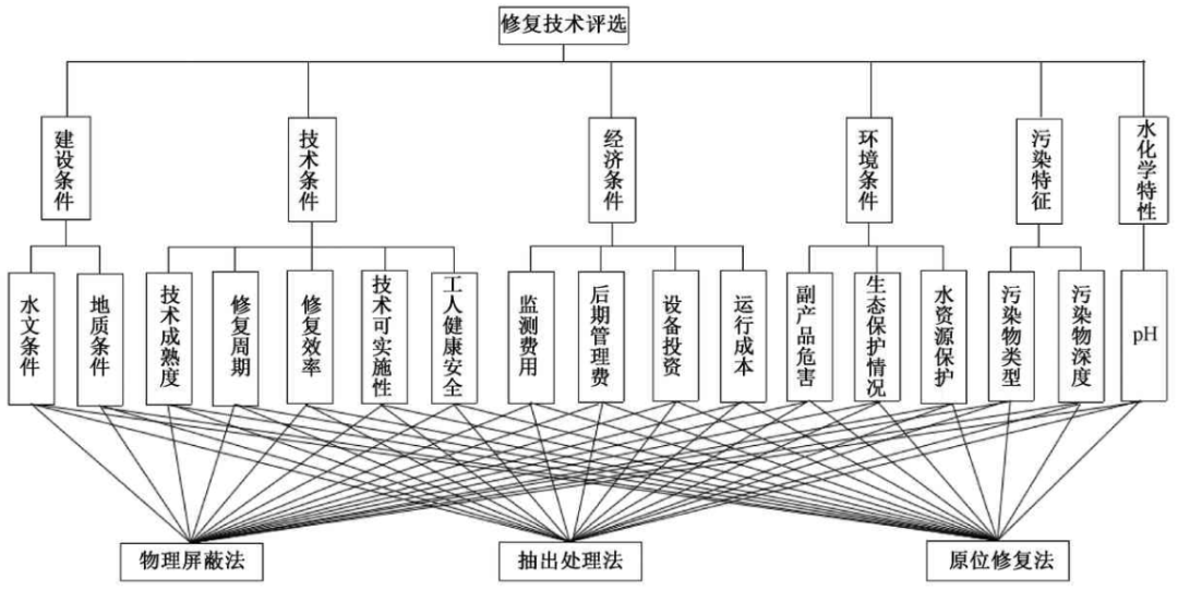 本文分析拉薩市垃圾填埋場地下水鉛的修復技術(shù),是基于拉薩市的自然環(huán)境和社會環(huán)境來選取建設(shè)條件、技術(shù)條件、經(jīng)濟條件、環(huán)境條件、污染特征及水化學特征6個方面作為評價指標體系。先利用AHP確定權(quán)重,然后用TOPSIS法對指標體系的優(yōu)劣進行排序分析。以AHP和TOPSIS相結(jié)合的方法完成綜合分析,最后通過評價結(jié)果確定了最適宜的修復方案。