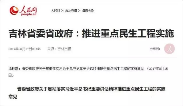 8月15日,吉林省委省政府發(fā)布了《關(guān)于貫徹落實(shí)習(xí)近平總書(shū)記重要講話精神推進(jìn)重點(diǎn)民生工程的實(shí)施意見(jiàn)》。其中,圍繞貫徹落實(shí)習(xí)近平總書(shū)記重要講話精神,結(jié)合吉林省實(shí)際,提出多項(xiàng)實(shí)施意見(jiàn)。