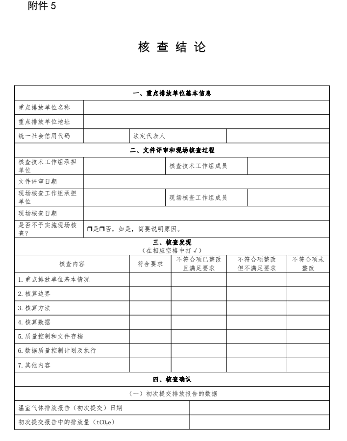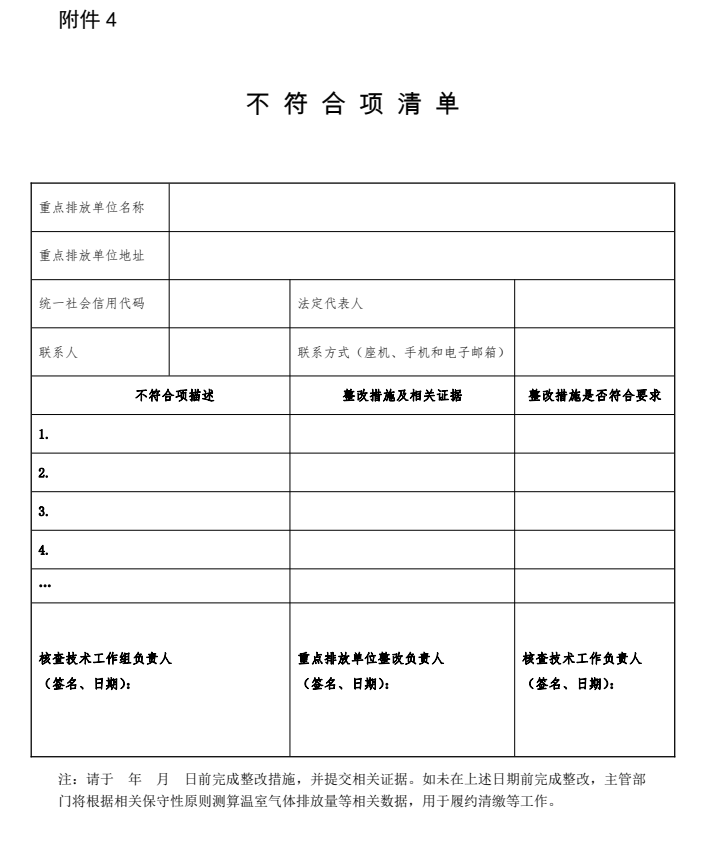-提出《不符合項(xiàng)清單》(見附件4),交給重點(diǎn)排放單位整改,驗(yàn)證整改是否完成;-出具《核查結(jié)論》;