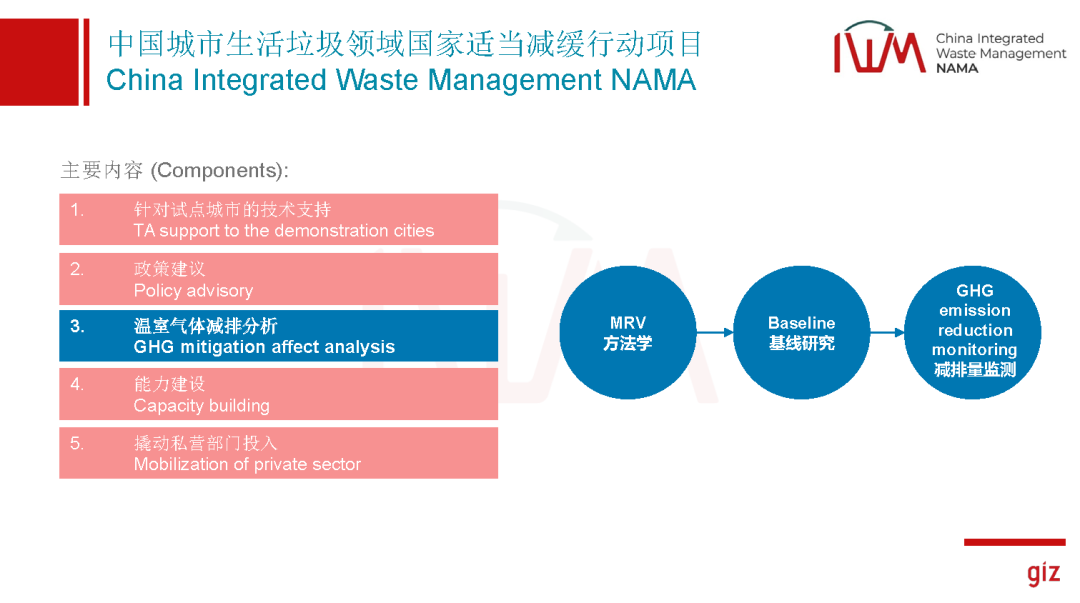 另外還有一部分很重要的內(nèi)容,我們會(huì)對(duì)這五個(gè)城市垃圾行業(yè)的溫室氣體排放去進(jìn)行分析。首先我們建立一個(gè)基于城市的方法學(xué),在這個(gè)方法學(xué)的基礎(chǔ)上,我們會(huì)有一個(gè)對(duì)五個(gè)城市的基線研究,最終減排量也是會(huì)每年度的去做定期的核算。