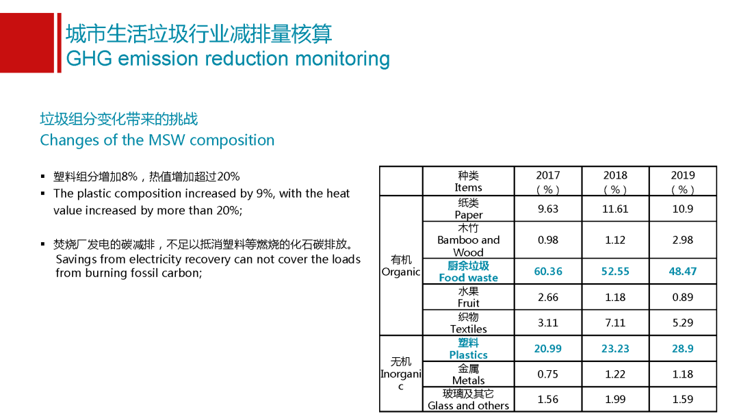 另外一點(diǎn),我還想分享的是垃圾組分給我們整個(gè)垃圾行業(yè)帶來的挑戰(zhàn),很多時(shí)候會(huì)說整個(gè)事情的發(fā)展都是日新月異的,我們能夠看到我們垃圾的成分也有非常明顯的變化。