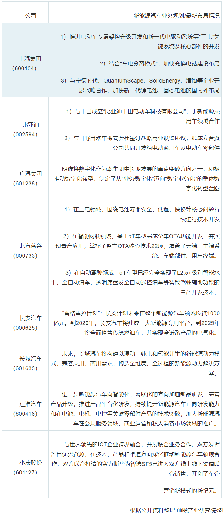 4、新能源汽車行業(yè)上市公司新能源汽車業(yè)務規(guī)劃對比