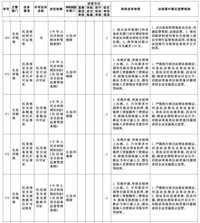 (四)優(yōu)化審批服務(wù)。對“重要工業(yè)產(chǎn)品(除食品相關(guān)產(chǎn)品、化肥外)生產(chǎn)許可證核發(fā)”等15項涉企經(jīng)營許可事項,下放審批權(quán)限,便利企業(yè)就近辦理。對“保安服務(wù)許可證核發(fā)”等256項涉企經(jīng)營許可事項,精簡許可條件和審批材料,減輕企業(yè)辦事負(fù)擔(dān)。對“會計師事務(wù)所設(shè)立審批”等140項涉企經(jīng)營許可事項,優(yōu)化審批流程,壓減審批時限,提高審批效率。對“海關(guān)監(jiān)管貨物倉儲審批”等18項設(shè)定了許可證件有效期限的涉企經(jīng)營許可事項,取消或者延長許可證件有效期限,方便企業(yè)持續(xù)經(jīng)營。對“互聯(lián)網(wǎng)上網(wǎng)服務(wù)營業(yè)場所經(jīng)營單位設(shè)立審批”等13項設(shè)定了許可數(shù)量限制的涉企經(jīng)營許可事項,取消數(shù)量限制,或者合理放寬數(shù)量限制并定期公布總量控制條件、企業(yè)存量、申請排序等情況,鼓勵企業(yè)有序競爭。同時,各地區(qū)、各部門要積極回應(yīng)企業(yè)關(guān)切,探索優(yōu)化審批服務(wù)的創(chuàng)新舉措。