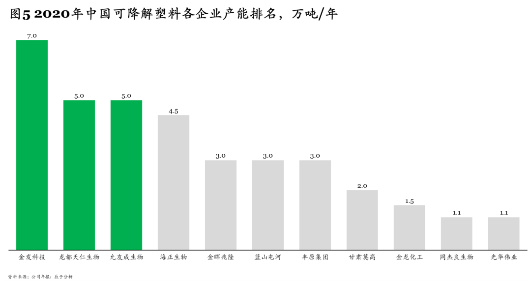 與此同時,各大廠商產(chǎn)能差距較小,市場份額排名前三的金發(fā)科技、龍都天仁生物、允友成生物2020年的產(chǎn)能也分別僅為7萬噸/年、5萬噸/年、5萬噸/年??梢哉f,誰能搶在前頭完成產(chǎn)能布局,誰就有可能搶占先機(jī)獲取更大份額,后來居上并非難事。