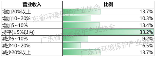 在營業(yè)收入方面,37.4%的環(huán)保企業(yè)反饋2021年二季度年?duì)I業(yè)收入同比增長,33.2%的環(huán)保企業(yè)基本持平,29.4%的環(huán)保企業(yè)表示同比下降。