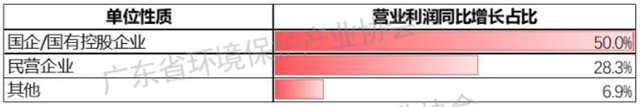 在不同單位性質(zhì)環(huán)保企業(yè)2021年上半年?duì)I業(yè)利潤方面,國企/國有控股企業(yè)中有50.0%的環(huán)保企業(yè)同比增長,民營企業(yè)有28.3%的環(huán)保企業(yè)同比增長,而其他企業(yè)中僅有6.9%的環(huán)保企業(yè)同比增長。