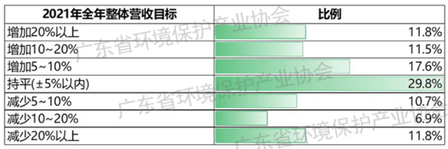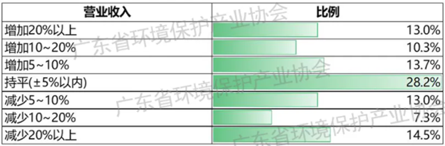 在營業(yè)收入方面,37.0%的環(huán)保企業(yè)反饋2021年上半年?duì)I業(yè)收入同比增長,28.2%的環(huán)保企業(yè)基本持平,34.7%的環(huán)保企業(yè)表示同比下降。