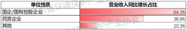在不同單位性質(zhì)環(huán)保企業(yè)2021年上半年?duì)I業(yè)收入方面,國企/國有控股企業(yè)中有64.3%的環(huán)保企業(yè)表示同比增長,民營企業(yè)則有38.8%的環(huán)保企業(yè)表示同比增長,而其他企業(yè)中僅有10.3%的環(huán)保企業(yè)表示同比增長。