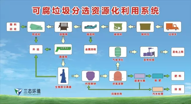 以浙江三門縣鄉(xiāng)鎮(zhèn)垃圾處理項目為案例,該項目技術最大特點為具有優(yōu)良的分選技術——二次分類自動化??梢栽诖迕癯醴值幕A上,經機械自動精細分選,可選出90%以上的可腐爛垃圾,彌補現(xiàn)階段人工分類的不足。前端分選分類工程是三態(tài)的研究重點之一,其開發(fā)了小型前端智能分類、大型后端機械分類。厭氧發(fā)酵工藝也是三態(tài)體系中的重點技術,目前吉林項目已運行三年多,是國內較為大型的混合垃圾厭氧發(fā)酵穩(wěn)定運行的唯一一家。