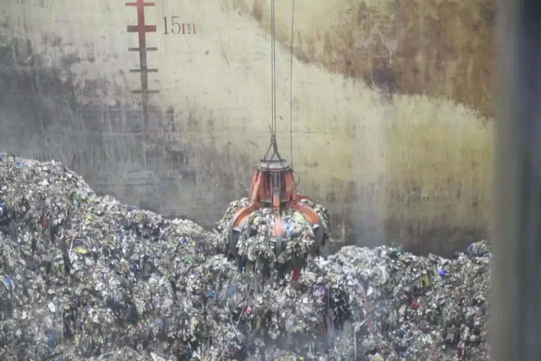 分類后的垃圾焚燒過程,一抓斗是8噸干垃圾