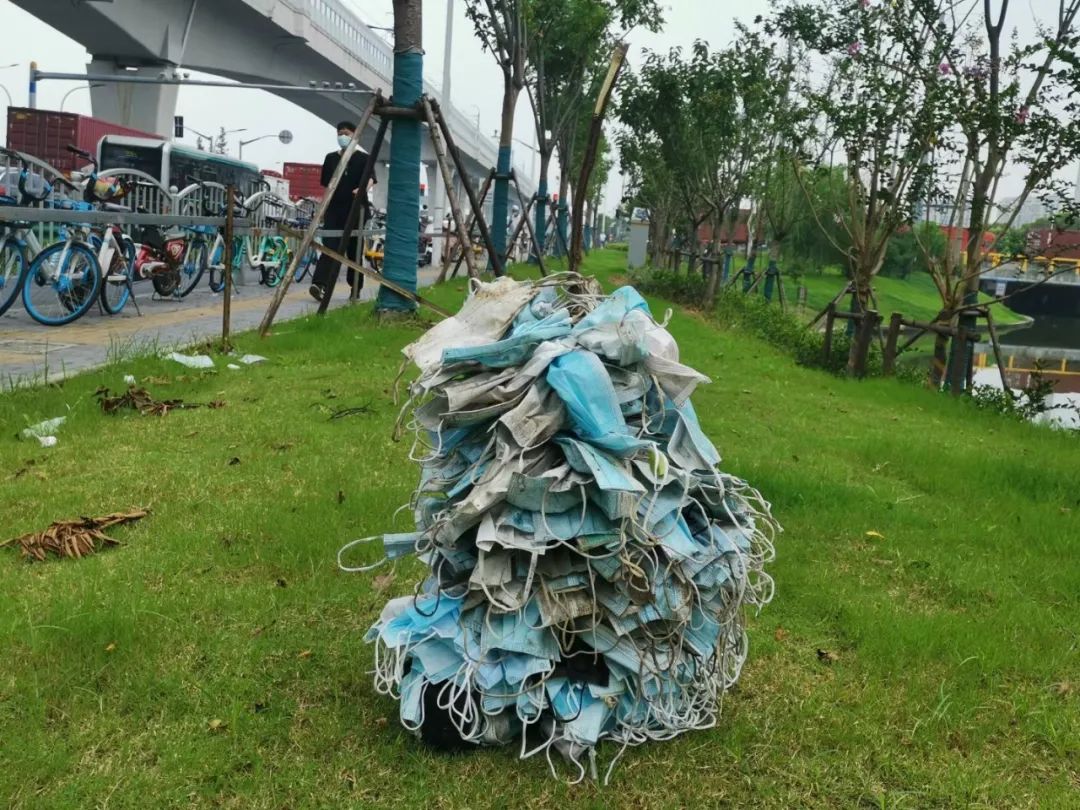 上圖拍攝于2021年7月31日,攝影者是上海仁渡海洋中心的劉永龍,他在看到上海某地鐵口滿是一次性口罩廢棄物的情況下,用一個多小時撿了367個廢棄口罩。