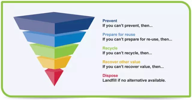 1996年,頒布了《循環(huán)經(jīng)濟(jì)與管理法》,該法是德國(guó)發(fā)展循環(huán)經(jīng)濟(jì)的總綱領(lǐng),它把資源閉路循環(huán)的循環(huán)經(jīng)濟(jì)思想推廣到所有生產(chǎn)部門,強(qiáng)調(diào)生產(chǎn)者對(duì)產(chǎn)品的整個(gè)生命周期負(fù)責(zé),規(guī)定處理垃圾的優(yōu)先順序是“避免產(chǎn)生—循環(huán)使用—最終處置”,比歐盟2008年提出垃圾管理的 “五層倒金字塔”原則早了12年。