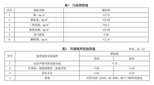 8.5 應采取隔聲、吸聲、降噪等措施。處理系統(tǒng)產生的環(huán)境噪聲應符合GB 12348、GB 3096、GB/T 50087的規(guī)定。具體指標見表2。