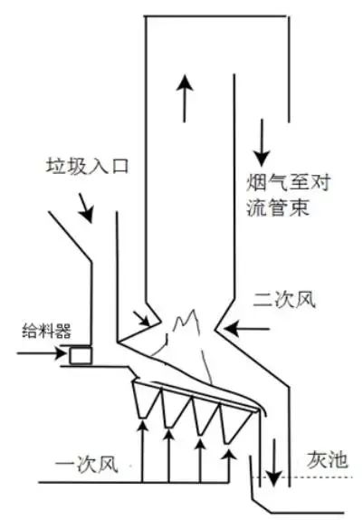 (2)對于第二個T的控制,是煙氣在爐膛及二次燃燒室內(nèi)的停留時間大于2秒,可實現(xiàn)二惡英的分解。從工程角度考慮將控制條件設定為爐膛溫度達到850℃時,煙氣停留時間不低于2s,可確保二惡英的高溫分解。是否可再提高煙氣停留時間,則取決余熱鍋爐設計和制造單位的設計與制造。焚燒爐低于額定焚燒量運行,且垃圾低位熱值小于設計值時,根據(jù)自動燃燒控制系統(tǒng)的指令,輔助燃料系統(tǒng)可自動啟動,由輔助燃燒器向爐內(nèi)噴輔助燃料,以確保爐膛溫度>850℃,并維持不低于2s。