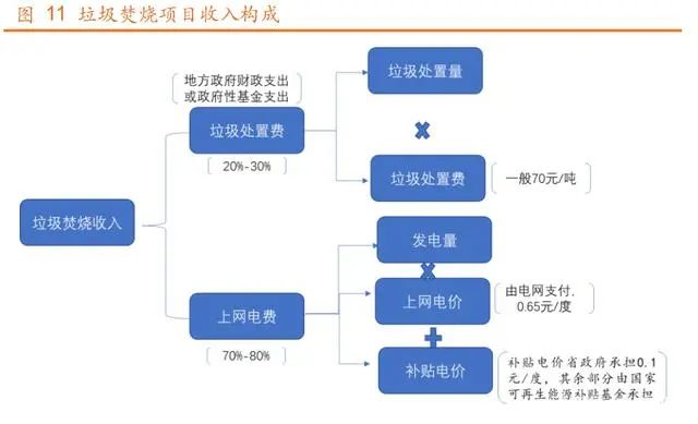 垃圾焚燒運營收入主要來自于上網(wǎng)電費(向電網(wǎng)收?。┖屠幚碣M(向政府收?。暇W(wǎng)電費一般占比 70%~80%,垃圾處理費一般占比 20%~30%。