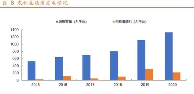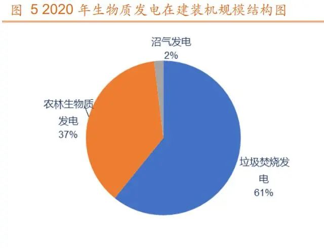 生物質(zhì)發(fā)電裝機容量中垃圾焚燒發(fā)電和農(nóng)林生物質(zhì)發(fā)電合計貢獻 96%。