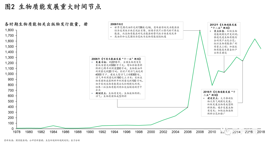 然而總的來說,生物質(zhì)能發(fā)展的時間并不長,21世紀(jì)以前這個領(lǐng)域的相關(guān)研究極少,我國也直到“十一五”才首次將其納入規(guī)劃范圍。2008年石油危機(jī)促使人類開始尋找替代能源,生物質(zhì)能也逐漸成為一個重要的選項(見圖2)。