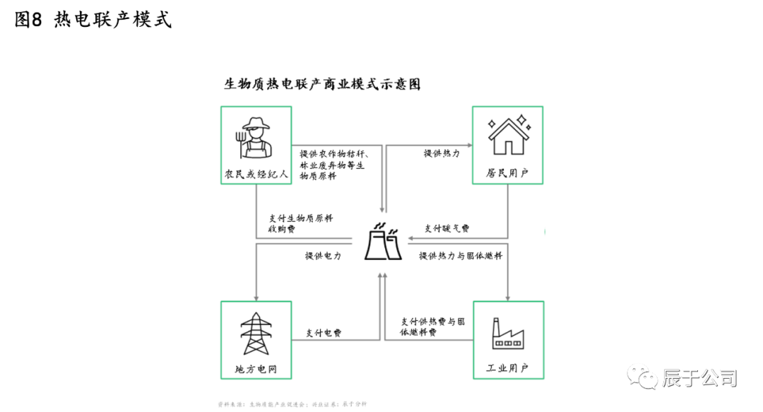 盈利壓力一方面將促進(jìn)行業(yè)洗牌,在優(yōu)勝劣汰的過程中預(yù)計行業(yè)集中度將逐步提升,民營企業(yè)的份額會逐步降低;另一方面,行業(yè)也在積極探索新的商業(yè)模式,提升項目盈利性,其中熱電聯(lián)產(chǎn)是主要的方向(見圖8)。相比單純發(fā)電賣錢,熱電聯(lián)產(chǎn)在發(fā)電過程中產(chǎn)生的剩余熱量也通過向居民或工業(yè)用戶供熱的方式來獲取收入,能量利用率得到提升,經(jīng)濟(jì)效益和社會效益都更好。