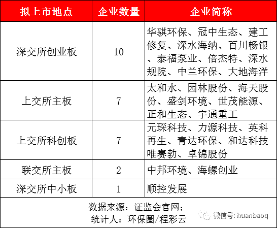 僅剛剛過(guò)去的第三季度,就有海螺創(chuàng)業(yè)、云南水務(wù)、正和生態(tài)、宇通重工、深水規(guī)院、中蘭環(huán)保、大地海洋、和達(dá)科技、唯賽勃等14家傳來(lái)擬掛牌分拆上市的消息,這數(shù)量已是去年全年掛牌上市數(shù)量的總和。3個(gè)月累計(jì)14家企業(yè)登陸資本市場(chǎng),也就是說(shuō),基本上不到一周,就會(huì)有一家環(huán)保企業(yè)傳來(lái)喜訊,走紅毯,敲終上市。“本以為受年初IPO全面審核趨嚴(yán)的信號(hào),今年環(huán)保產(chǎn)業(yè)IPO熱潮會(huì)降溫,沒(méi)想到不降反增。也沒(méi)有像其他行業(yè)因?yàn)楸O(jiān)管部門(mén)突擊檢查,紛紛陷入撤回材料終止審核的窘態(tài)。”某環(huán)保投行人士表示。《第一財(cái)經(jīng)》曾經(jīng)做過(guò)統(tǒng)計(jì),僅在今年3月的前18天,就有8家科創(chuàng)板、12家創(chuàng)業(yè)板企業(yè)終止審核。今年2月份以來(lái),已有逾50家IPO企業(yè)因撤回材料而終止審核,其中有16家是因?yàn)槌橹鞋F(xiàn)場(chǎng)檢查而撤回材料。反觀(guān)常常被資本忽視的環(huán)保行業(yè),卻是“真金不怕火煉”,在年初政策風(fēng)聲較緊的3月,迎來(lái)了掛牌上市的高潮,當(dāng)月共有園林股份、順控發(fā)展、海天股份、建工修復(fù)、深水海納、元琛科技等6家企業(yè)敲鐘上市,掛牌數(shù)量比今年任何一個(gè)月都要多,甚至有望創(chuàng)下年度IPO數(shù)量最多的月份。相比股市上流行的各種“XX茅”,或許“環(huán)保茅”才是真正的王者。同時(shí),我們還欣喜地看到,去年下半年陸續(xù)IPO過(guò)會(huì)的同興環(huán)保、華騏環(huán)保、百川暢銀環(huán)保、太和水、建工環(huán)境、深水海納、海天股份、元琛環(huán)保、盛劍環(huán)境、青達(dá)環(huán)保,中蘭環(huán)保等,這11家環(huán)保上市都在今年上半年成功掛牌上市,正式邁入資本市場(chǎng)。不過(guò)值得一提的是,同樣去年下半年IPO過(guò)會(huì)的華新綠源環(huán)保就沒(méi)有那么順利了,直到現(xiàn)在也遲遲沒(méi)有敲鐘上市的消息。創(chuàng)業(yè)板/科創(chuàng)板成IPO主戰(zhàn)場(chǎng)