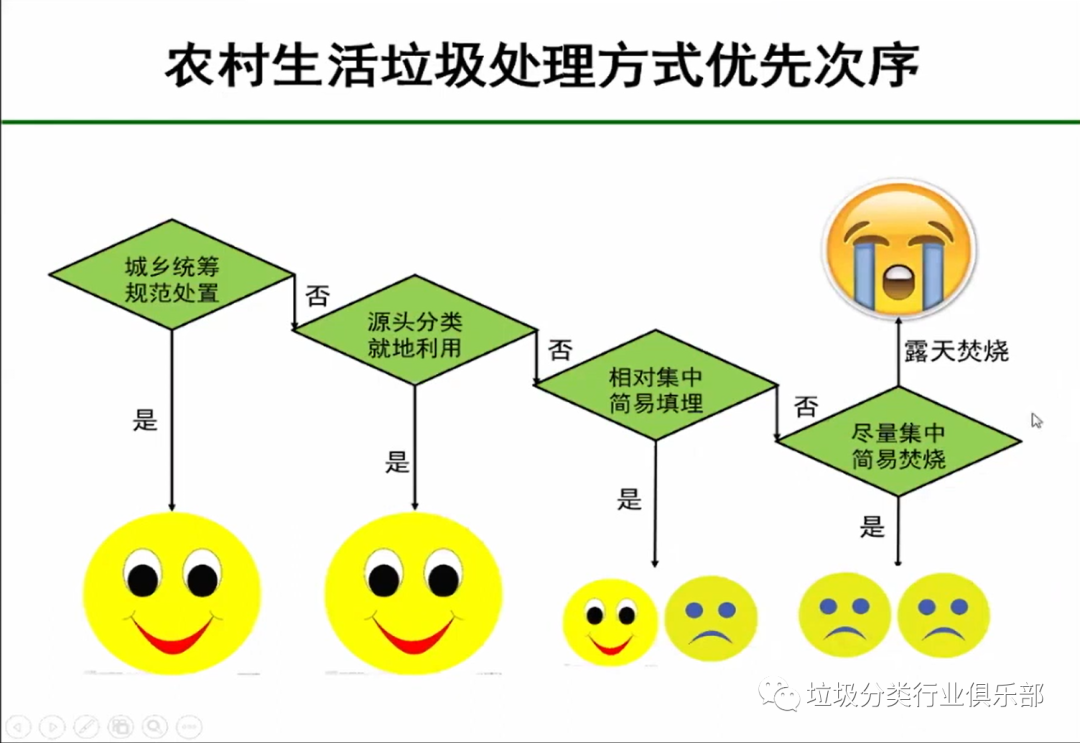 如何讓農(nóng)村垃圾分類在短時(shí)間得到改善?劉教授按優(yōu)先次序介紹了農(nóng)村生活垃圾處理方式:優(yōu)先考慮城鄉(xiāng)統(tǒng)籌、規(guī)范處置;如果有的地方達(dá)不到條件可以選擇源頭分類、就地利用,形成一個(gè)利用體系。若實(shí)在不行就選擇相對(duì)集中簡(jiǎn)易填埋,但簡(jiǎn)易焚燒特別是露天焚燒是不提倡的,它對(duì)環(huán)境的危害性太大。