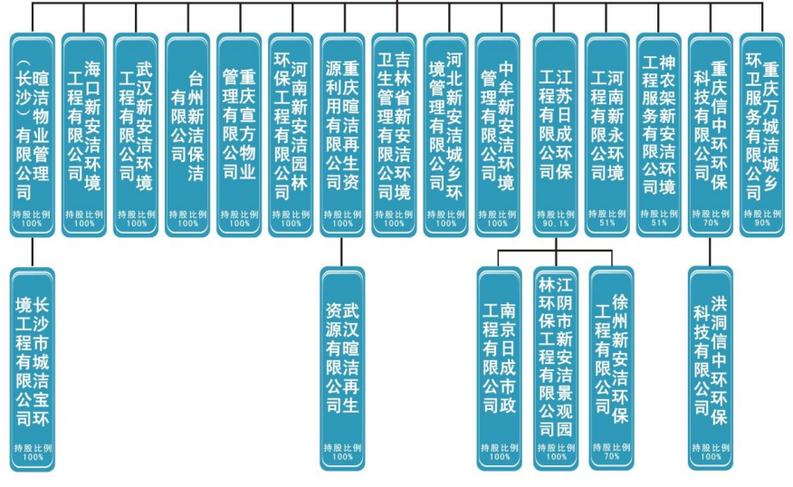 就在其宣布轉(zhuǎn)板消息不久,9月3日,北京證券交易所(下文簡稱“北交所”)注冊成立,11月15日將正式開市。據(jù)了解,北交所實行試點證券公開發(fā)行注冊制,由全國中小企業(yè)股份轉(zhuǎn)讓系統(tǒng)中的精選層整體平移而來,定位為“專精特新”中小企業(yè)直接融資服務,偏重服務創(chuàng)新型中小民營企業(yè)。這樣一來,對于環(huán)保產(chǎn)業(yè)中有機固廢處理、節(jié)能降碳裝備、資源循環(huán)利用等細分領域的科技創(chuàng)新驅(qū)動型中小企業(yè)來說,或許更有機會。而根據(jù)規(guī)則,屆時包括新安潔在內(nèi)的新三板市場精選層首批68家公司將全部平移進入北交所。但對于已經(jīng)進入轉(zhuǎn)板通道的新安潔來說,或許因為對北交所活躍度有所擔心,或許由于轉(zhuǎn)板箭在弦上不得不發(fā),也或許其對轉(zhuǎn)板成功率有更多的信心,所以北交所的設立并沒有打斷其轉(zhuǎn)板的計劃。9月 13日、29日、10月20日和11月3日,新安潔專門發(fā)布了轉(zhuǎn)板進展公告,稱創(chuàng)業(yè)板轉(zhuǎn)板工作仍然按計劃推進,并將在完成各項準備工作后向深圳證券交易所提起申報。從其所處的行業(yè)看,目前環(huán)衛(wèi)市場的格局已經(jīng)有了新的變化,市場整體的領先地位已經(jīng)被北京環(huán)衛(wèi)、僑銀環(huán)保、玉禾田、啟迪桑德、盈峰環(huán)境、北控城市服務、龍馬環(huán)衛(wèi)等新老環(huán)衛(wèi)企業(yè)穩(wěn)定占據(jù),一些領先企業(yè)開始向城市服務運營商轉(zhuǎn)型。在業(yè)務方面,新安潔的業(yè)務范圍已經(jīng)覆蓋了重慶、湖北、江蘇、河南、山東、湖南、安徽等全國12個省,重慶區(qū)域的業(yè)務占比約1/4。其中,“重慶市兩江新區(qū)生活垃圾分類”、“武漢市東西湖區(qū)生活垃圾分類”、“山東青州市城鄉(xiāng)環(huán)衛(wèi)一體化”和“河南汝南縣城鄉(xiāng)環(huán)衛(wèi)一體化”項目,入選了中國城市管理協(xié)會主辦的2018國際城市環(huán)境衛(wèi)生博覽會示范案例。▼新安潔公司結(jié)構(gòu)圖(截至2020年6月,來源:新安潔公告)此外,隨著這些年互聯(lián)網(wǎng)、物聯(lián)網(wǎng)、信息技術(shù)、智慧城市、AI等新技術(shù)在環(huán)衛(wèi)行業(yè)中應用越來越廣泛,新安潔也希望打造公司科技屬性,以全面實現(xiàn)環(huán)衛(wèi)智能化運營。