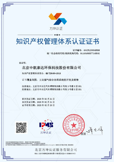 2016年3月22日,中航泰達掛牌新三板。因為領先的行業(yè)地位和良好的成長性,之后入選創(chuàng)新層。2020 年7 月27 日,中航泰達作為全國首批32家(北京首批6家)企業(yè)入選新三板精選層,7月30日完成公開發(fā)行程序,正式開市交易。而在11月15日北交所開市之際,中航泰達也將隨之平移至北交所,迎來自己的新時代。作為一家入圍北交所首批上市名單的“專精特新”企業(yè),自成立以來,中航泰達就非常注重新技術(shù)、新產(chǎn)品的研發(fā)與改進,在煙氣治理方面形成了完整的知識產(chǎn)權(quán)體系。此前,它曾經(jīng)成功獨創(chuàng)開發(fā)了氣動脫硫技術(shù)——旋渦撞擊法,將該成果轉(zhuǎn)化且成功申請了自主知識產(chǎn)權(quán)的專利技術(shù)——旋渦撞擊流脫硫除塵裝置。同時,他們還引進國外專利技術(shù),成功開發(fā)出了一種適合于燒結(jié)、球團的煙氣脫硝技術(shù)——低溫濕法脫硝技術(shù),為前期開疆拓土進行了很好的技術(shù)支撐。目前,中航泰達在逆流活性炭工藝、濕法超低排放、低溫SCR 等領域擁有授權(quán)發(fā)明專利8 項、實用新型專利技術(shù)83 項。▼中航泰達知識產(chǎn)權(quán)管理體系認證證書而在鋼鐵、焦化行業(yè)煙氣治理領域奠定了一定的市場地位的基礎上,它現(xiàn)在也正逐步向水泥、化工等其他非電行業(yè)滲透。