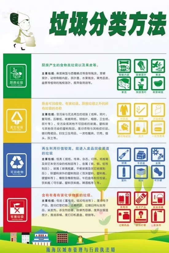 永康市在城鄉(xiāng)全面開(kāi)展了有害垃圾分類(lèi),電池、廢舊燈管燈泡、過(guò)期藥品、農(nóng)藥容器等不再混在普通生活垃圾中收集處理,而由超市、藥店和鄉(xiāng)鎮(zhèn)統(tǒng)一回收點(diǎn)回收,再定點(diǎn)集中銷(xiāo)毀。永康市農(nóng)辦干部丁維君說(shuō):“更精細(xì)化的分類(lèi),能在減量化、資源化利用的基礎(chǔ)上,進(jìn)一步提高無(wú)害化處理水平。”