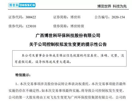 這次股份轉(zhuǎn)讓完成后,廣州環(huán)投集團成為博世科的第一大股東,廣州市人民政府成為公司的實際控制人,博世科正式變身國企。