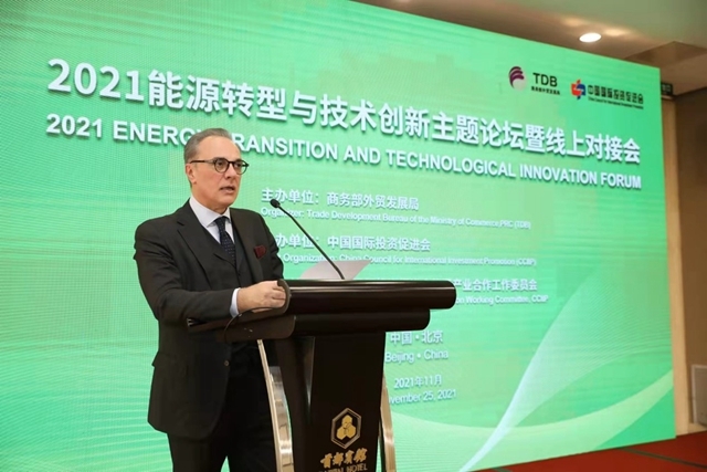 2021年11月25日下午,由商務(wù)部外貿(mào)發(fā)展局主辦、中國國際投資促進(jìn)會(huì)承辦、中國國際投資促進(jìn)會(huì)能源產(chǎn)業(yè)合作工作委員會(huì)協(xié)辦的“2021年能源轉(zhuǎn)型與技術(shù)創(chuàng)新主題論壇暨線上對(duì)接會(huì)”成功舉辦。本次論壇以“能源轉(zhuǎn)型與技術(shù)創(chuàng)新”為主題,聚焦“雙碳目標(biāo)”背景下的能源轉(zhuǎn)型與技術(shù)創(chuàng)新,宣傳推廣自主品牌企業(yè),促進(jìn)中外企業(yè)在清潔能源開發(fā)利用、傳統(tǒng)能源節(jié)能減排等領(lǐng)域開展深入交流與合作。