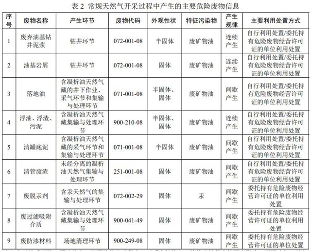 3.2 常規(guī)天然氣開采主要危險(xiǎn)廢物產(chǎn)生環(huán)節(jié)