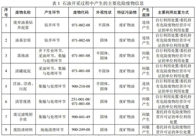 注:由于地質(zhì)區(qū)塊、原油粘度、地層膠結(jié)出砂程度、開采實(shí)際情況、管線腐蝕程度等因素影響,不同油氣田的危險(xiǎn)廢物產(chǎn)生規(guī)律和產(chǎn)生量差異較大,因此未列出危險(xiǎn)廢物產(chǎn)廢系數(shù)。