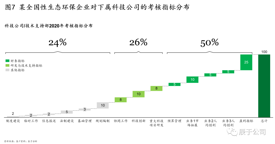 然而實(shí)際情況是:這些技術(shù)公司要么是“扶不起的阿斗”,經(jīng)營(yíng)多年,干的仍然主要是公司內(nèi)部的那些業(yè)務(wù),有些甚至“只外包不實(shí)干”,成為名副其實(shí)的“二道販子”,徒增成本之外,對(duì)企業(yè)沒(méi)有太多增值(見(jiàn)圖5);要么是“眼睛全往外看”,一心想的是如何開拓外部市場(chǎng),對(duì)公司內(nèi)部的業(yè)務(wù)“不聞不問(wèn)不參與”,例如針對(duì)一家全國(guó)性生態(tài)環(huán)保企業(yè)的調(diào)研發(fā)現(xiàn),下屬技術(shù)公司超過(guò)80%的技術(shù)人員都在做外部市場(chǎng),只有不足20%的人偶爾會(huì)參與內(nèi)部項(xiàng)目,8條業(yè)務(wù)線只有1條業(yè)務(wù)線形成了標(biāo)準(zhǔn)化的技術(shù)方案。