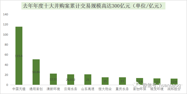 尤其值得一提的是,去年年度TOP 10并購案累計交易規(guī)模高達300億元,排名前三的,除了業(yè)內(nèi)熟知買來又賣的中國天楹出售Urbaser之外,還有兩樁鮮為人知的收購大案:通用首創(chuàng)50.84億元轉(zhuǎn)讓40%深水集團股權,以及清新環(huán)境作價22.51億元競買國潤水務。