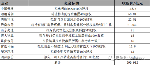 這里想強調(diào)一點,不得已“賣賣賣”的,不僅是業(yè)內(nèi)熟知的資金出現(xiàn)問題的環(huán)保民企,還有一批之前跨界進軍環(huán)保的傳統(tǒng)行業(yè)企業(yè),比如去年并購案的馬鞍山鋼鐵股份,子公司合肥板材就向?qū)毼渌畡辙D(zhuǎn)讓了合肥供水100%股權,他們賣資產(chǎn)的目的是為了做強做精鋼鐵主業(yè),有序退出非主業(yè)環(huán)保資產(chǎn)。