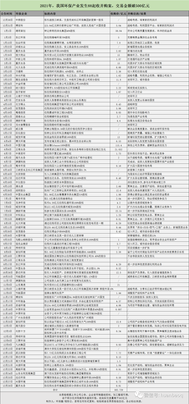 附:2021年環(huán)保產(chǎn)業(yè)88起并購案全圖