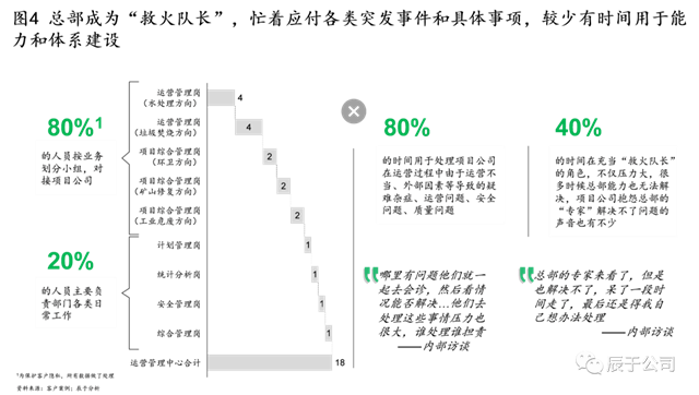 由于授權(quán)不充分或者下屬項目公司能力參差不齊,一些總部的運營管理部門淪為“救火隊長”,幾乎一半的時間忙著應(yīng)付各類突發(fā)事件和具體事項,不僅壓力大,而且臨陣磨槍有時未必見效(見圖4)。