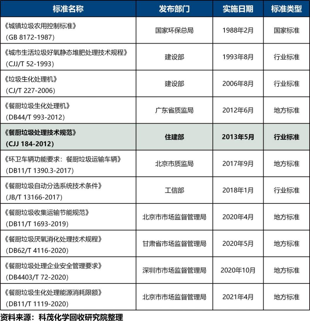 表3 餐廚垃圾處理行業(yè)相關(guān)標(biāo)準(zhǔn)