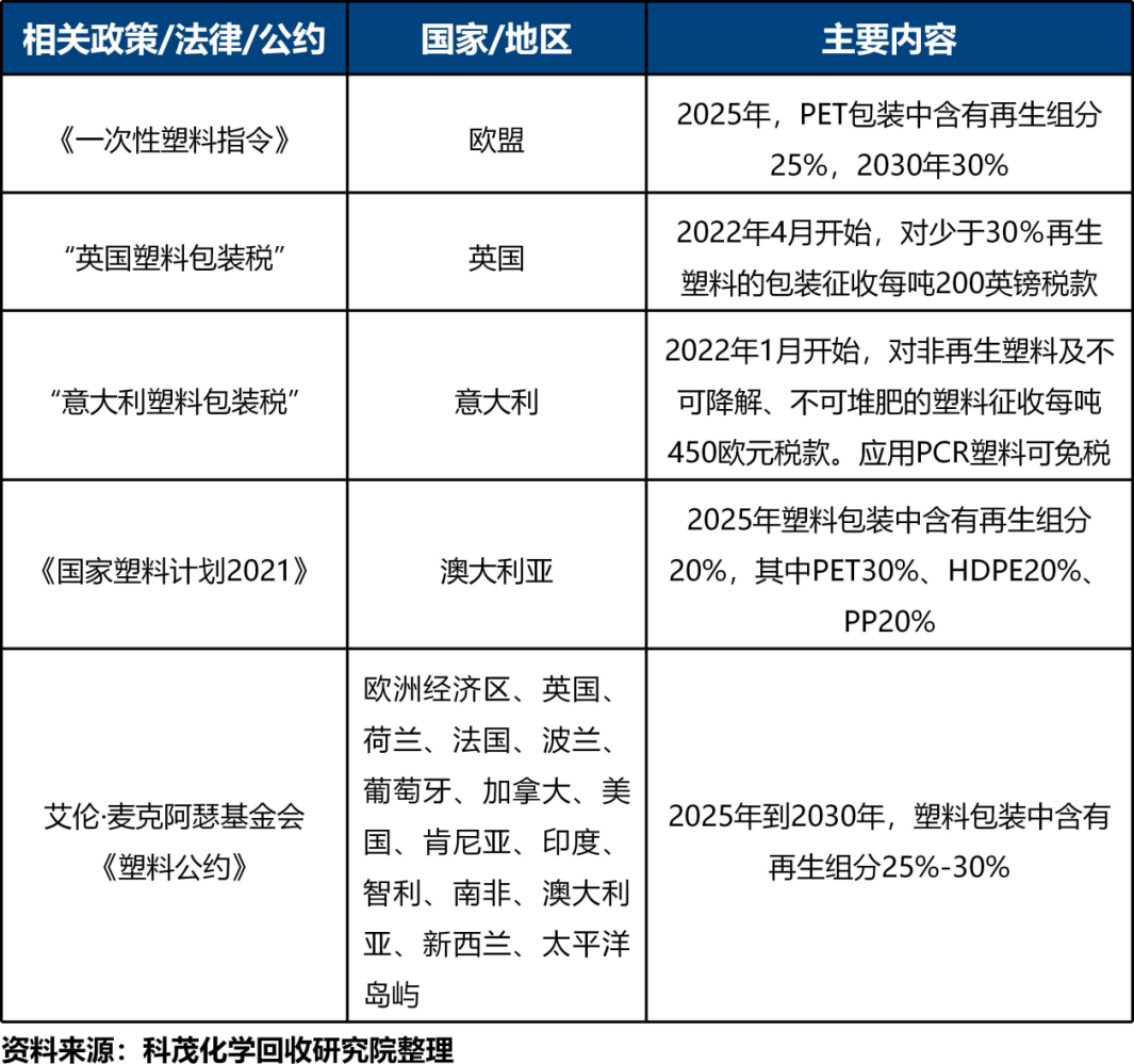 2.借鑒歐洲地區(qū)PCR塑料政策,適時(shí)推出塑料包裝稅收政策,或明確新塑料含PCR組分的目標(biāo),以激勵(lì)再生塑料應(yīng)用。