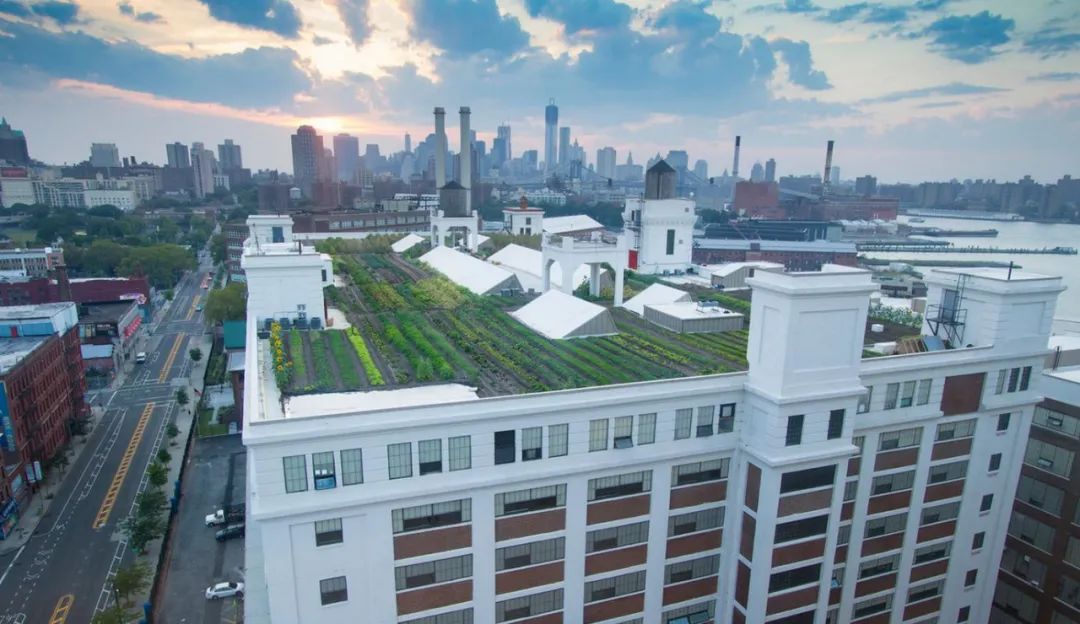 布魯克林農(nóng)莊位于美國紐約一棟1911年的老舊房屋的屋頂。建筑師在對原有建筑進行結(jié)構(gòu)加固等一系列處理后,創(chuàng)造性地利用原有的廢棄屋頂,設(shè)計出了一座空中復(fù)合農(nóng)莊。這座屋頂農(nóng)莊不僅能夠生產(chǎn)糧食,還可以養(yǎng)殖蜜蜂、家禽。