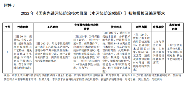3.2022年《國(guó)家先進(jìn)污染防治技術(shù)目錄(水污染防治領(lǐng)域)》初稿模板及編寫(xiě)要求