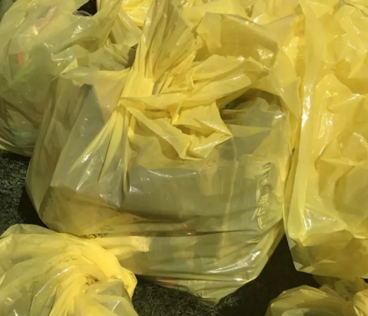 經過調查,大部分黃色塑料袋內均為可回收類的易拉罐,瓶子等。但也有混入的不可回收類垃圾。