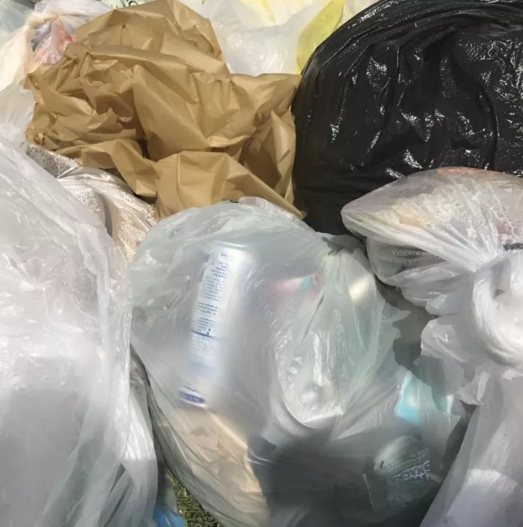 而白色透明袋里也發(fā)現了可回收的易拉罐等物品