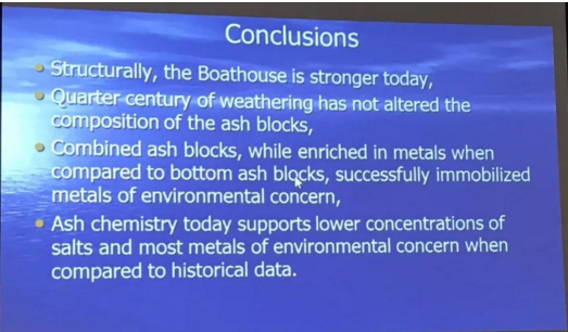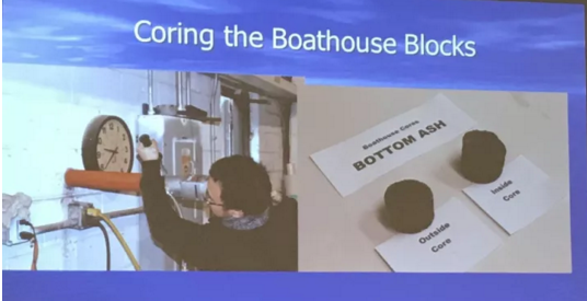這位教授的演講題目很有趣,叫“船屋”。他講述了自己在年輕時候從垃圾焚燒廠弄回來一些垃圾灰制成的磚,用這些磚制作了一個小房間,這個小房間是用于存放他出去游玩的一艘小船的。為了檢驗這些垃圾灰是否對人存在傷害,在這個幾十年中間,這位老教授會定期從墻上取樣分析這些灰的成分變化,并將這些數據展現在我們面前。