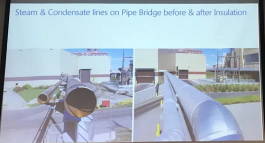 這座焚燒廠投運于2014年,裝備精良,做工精湛,其采用了空冷島的設計(與我們山西大同項目很相似),尤其是彩瓦的材質和施工質量充分體現出了一個代表美國最新工藝水平的巔峰之作。對于彩瓦的材質選擇和施工監(jiān)督,一直是我們所關注的重點,對彩瓦應當嚴格要求采用連續(xù)瓦楞并確保足夠的厚度,才能體現出一個項目的質感和品質,這也是我本人最關注的環(huán)節(jié)。